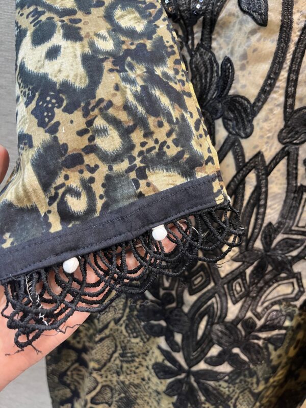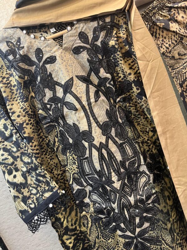 Beige with Black Maria.B D.No 1051 Readymade Cotton Suit Set with Printed Pant & Dupatta – XL to XXL (Copy)