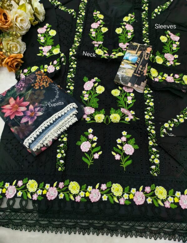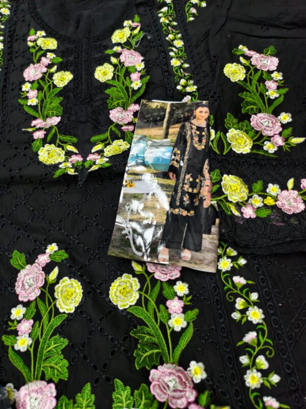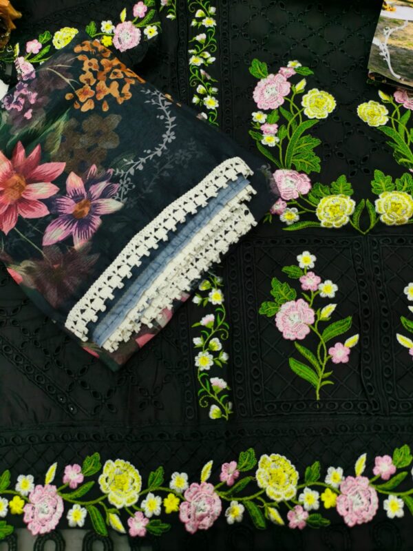 Black Alif Fashion Pakistani Concept Cotton Embroidered Suit with Chiffon Dupatta