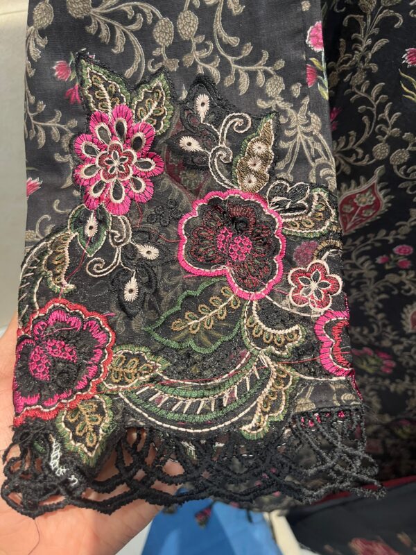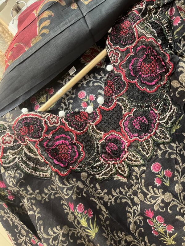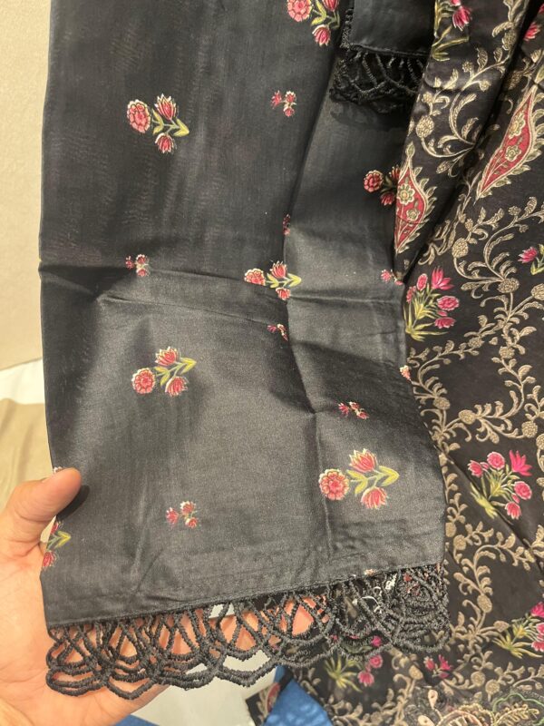 Black Readymade Cotton Suit with Printed Pant & Dupatta