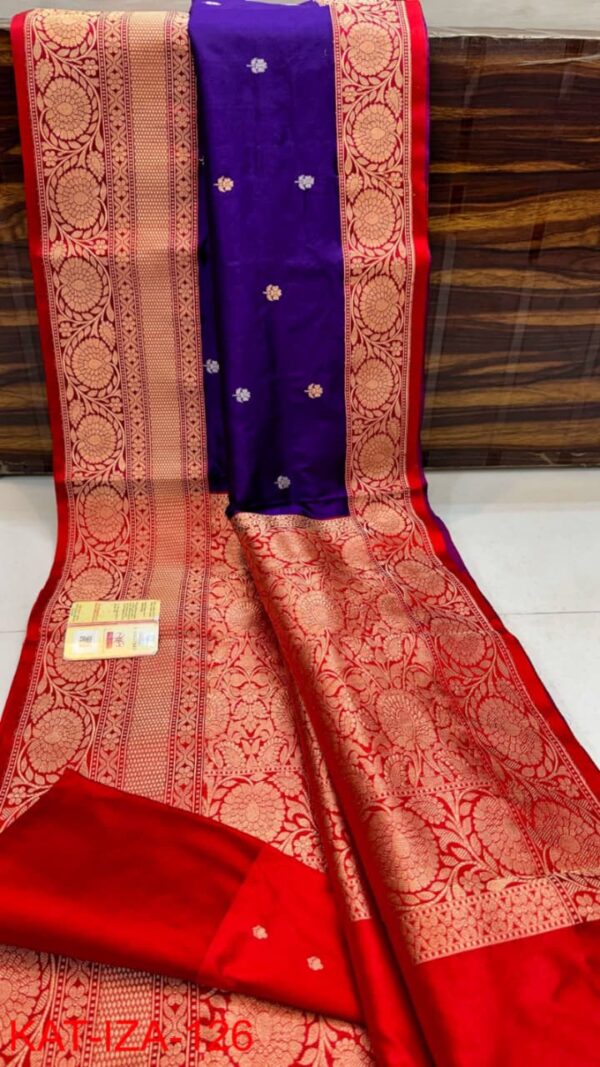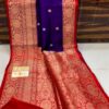 Dark Blue And Red Border Pure Handloom Katan Silk Saree Antique Zari Weaving