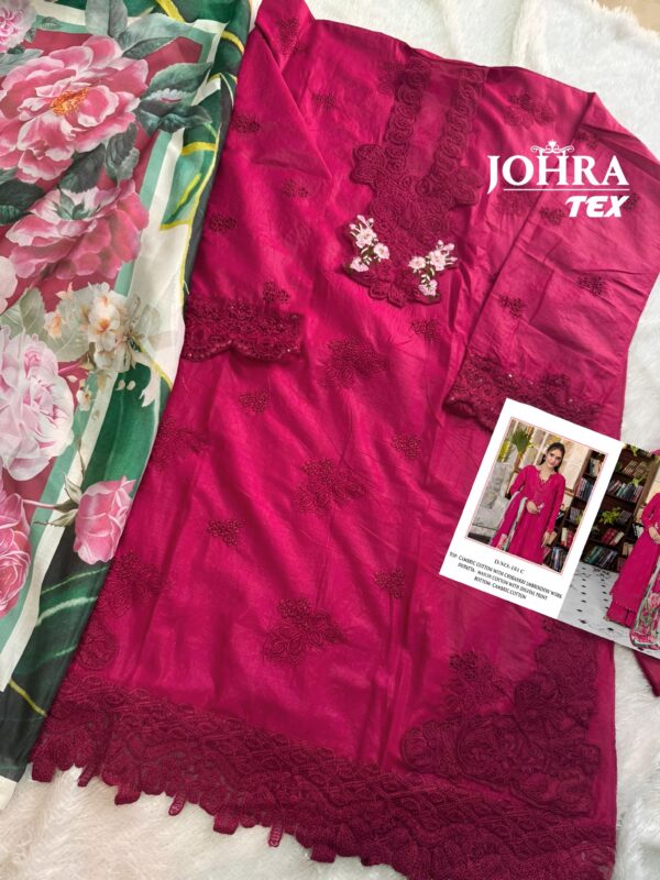 Hot Pink Johra Tex JT-184 Cambric Cotton Chikankari Suit with Maslin Digital Print Dupatta