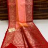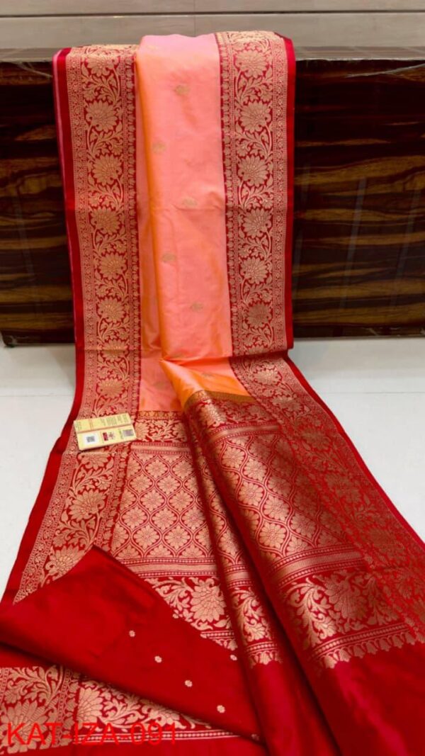 Light pink and Red Pure Handloom Katan Silk Saree with Antique Zari & Blousepiece