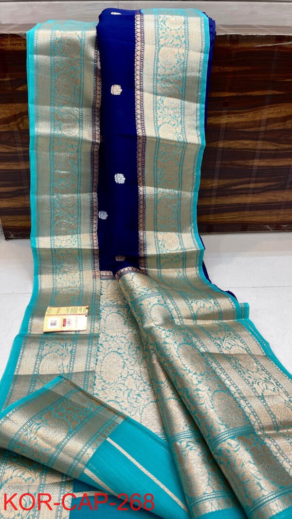 Royal Blue and Turquoise Handloom Kora Banarasi Silk Saree with Kalakari Maheen Work