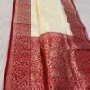 White And Maroon Pure Raw Mango Handloom Katan Silk Saree